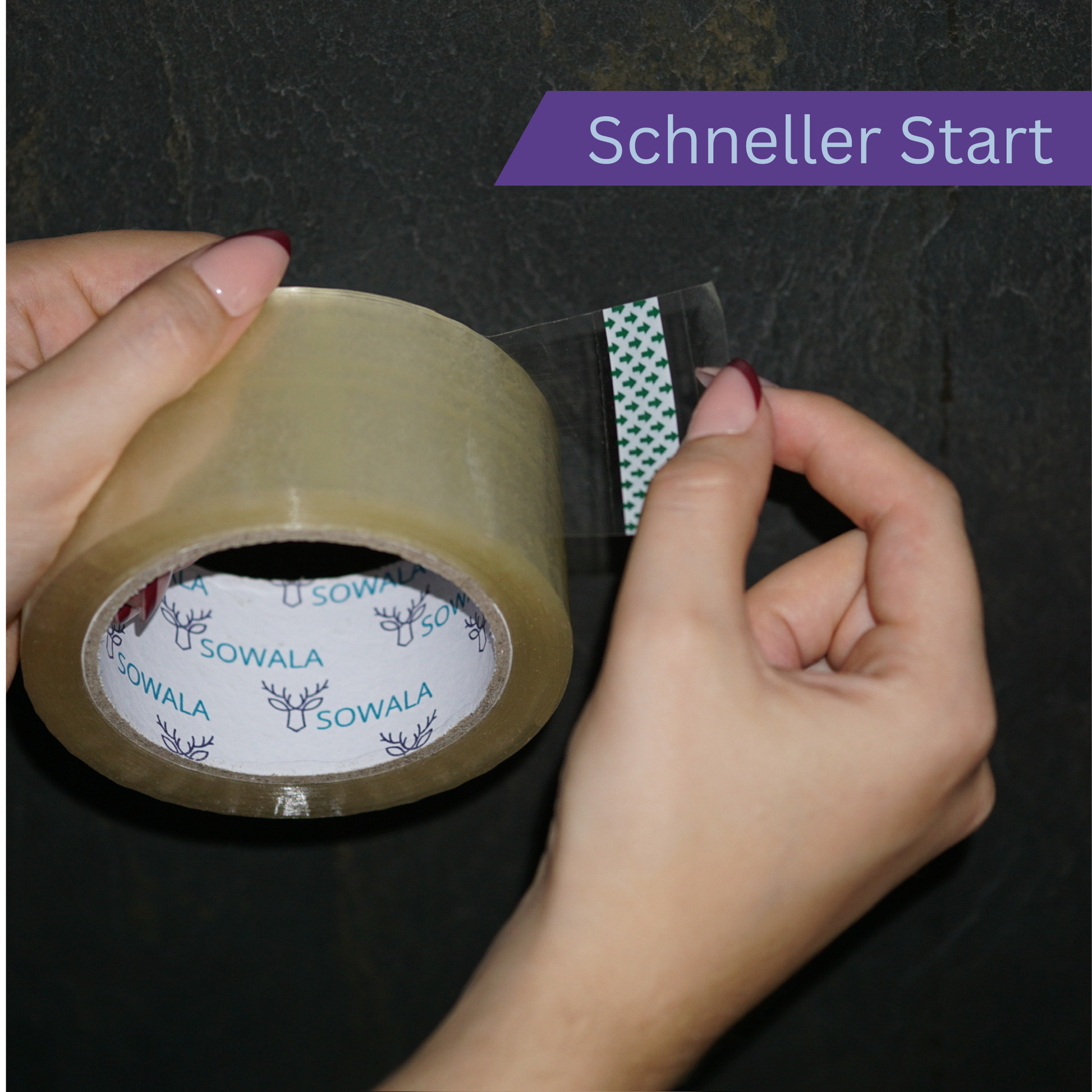 Maße: 66 m x 50 mm – Perfekte Länge und Breite für effizientes Verpacken im Versand, Lager oder beim Umzug – kompatibel mit allen Standardabrollern.
